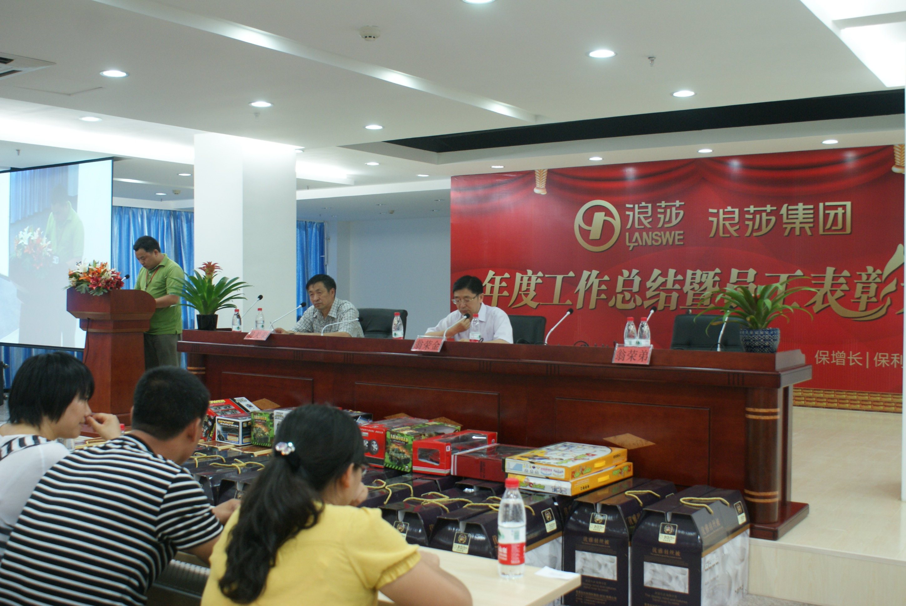8月18日下午,浪莎集团年度工作总结暨员工表彰大会在三期内衣楼6楼圆满举行,集团总经理翁关荣、董事长翁荣金、总裁翁荣弟出席了本次大会。参加大会的主要人员有各部长、经理、正副主任、大办公室所有人员等,各车间优秀模范代表也参加了本次大会,总计四五百人,大会由总经办主任江学波主持。