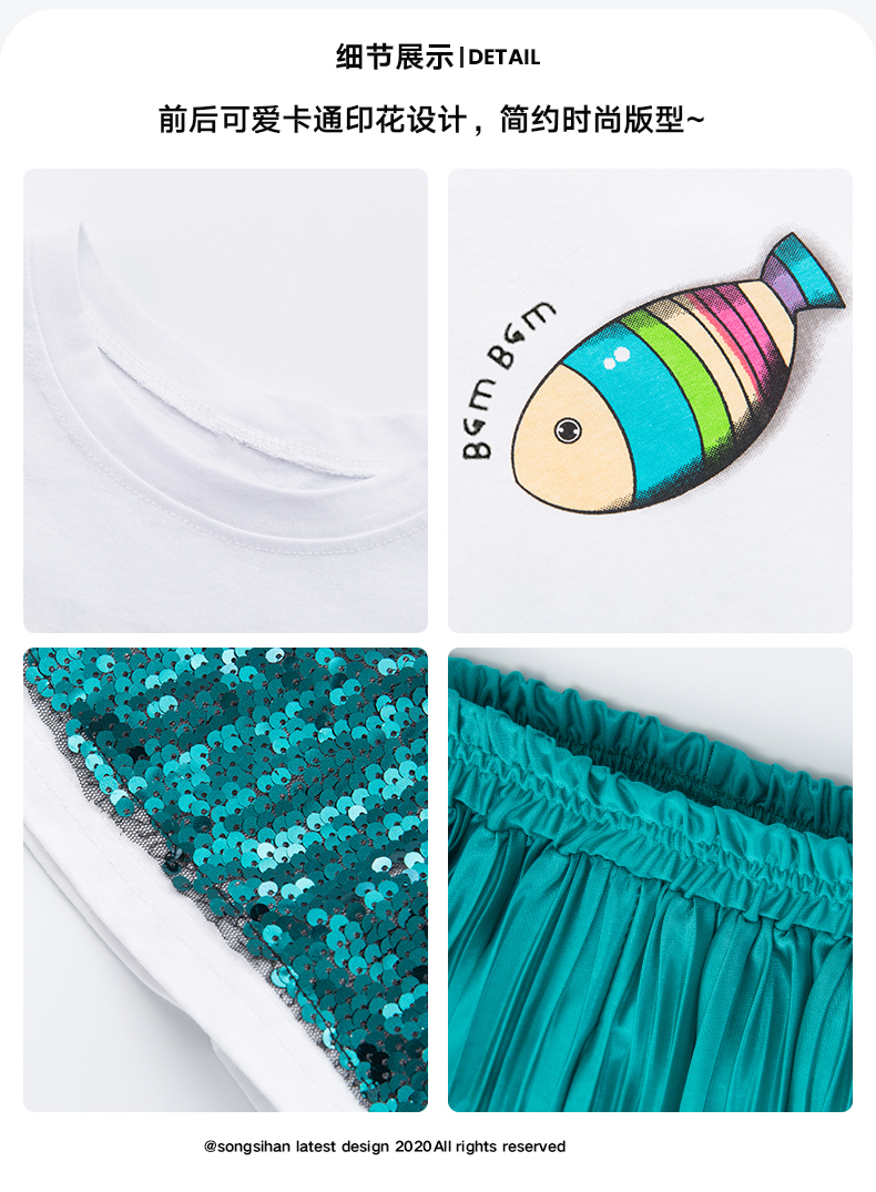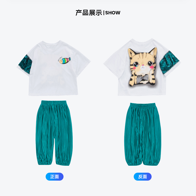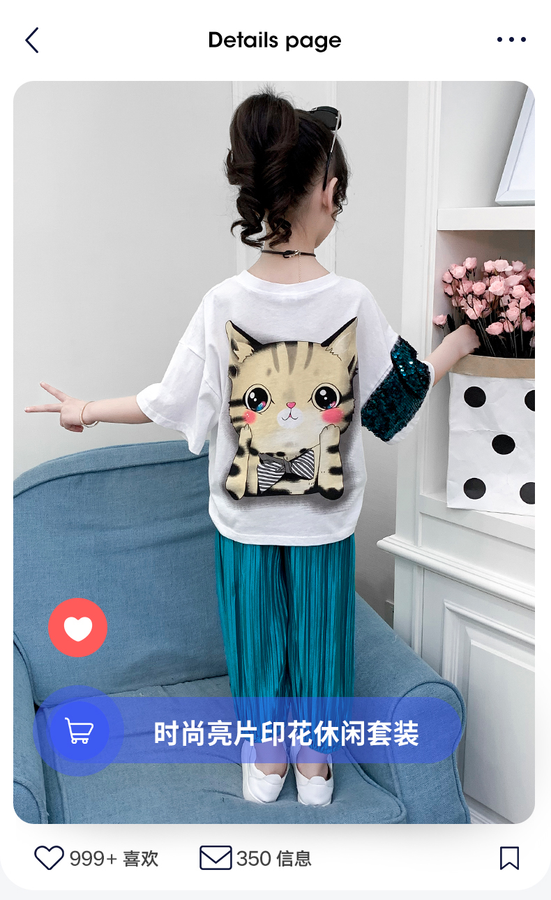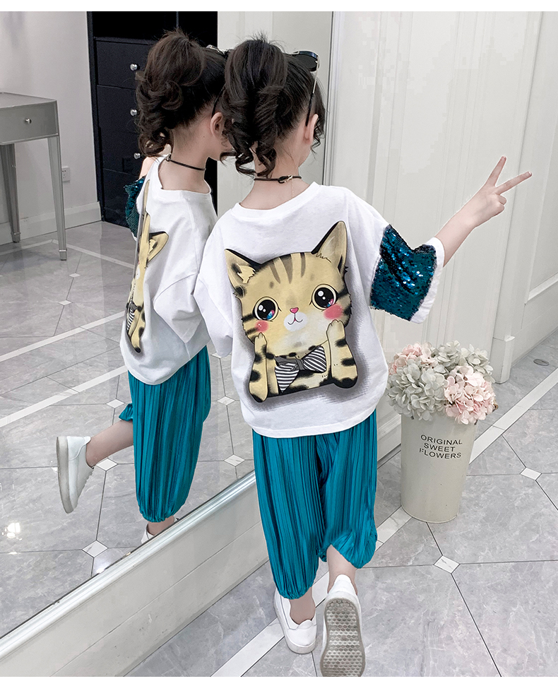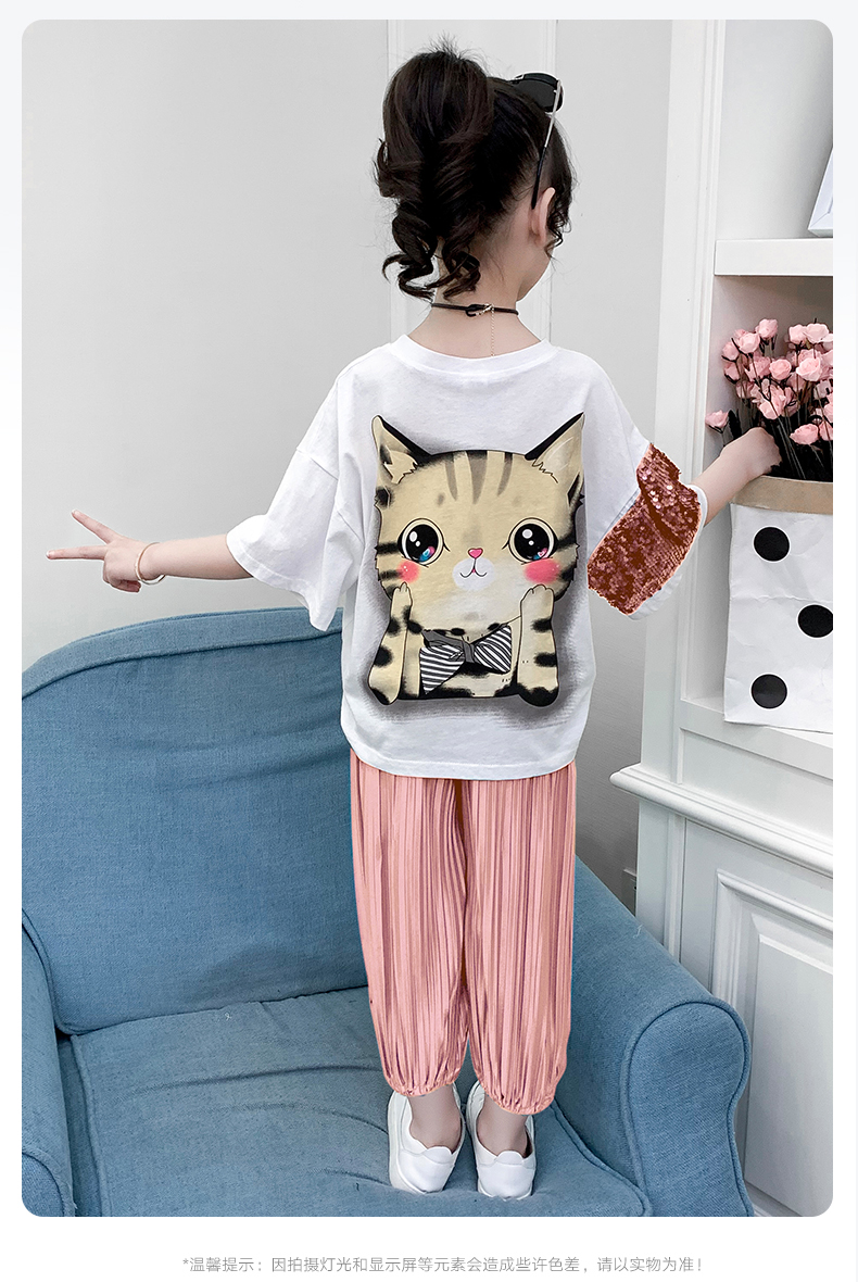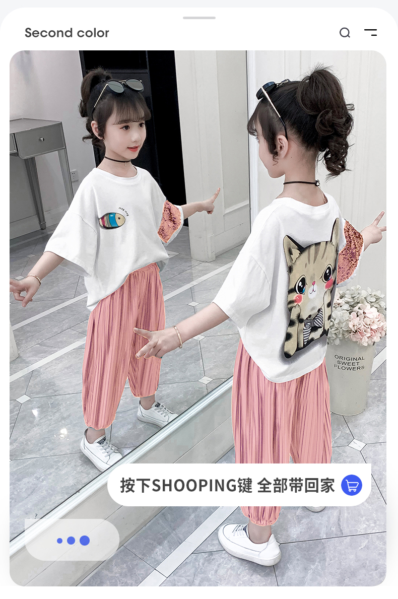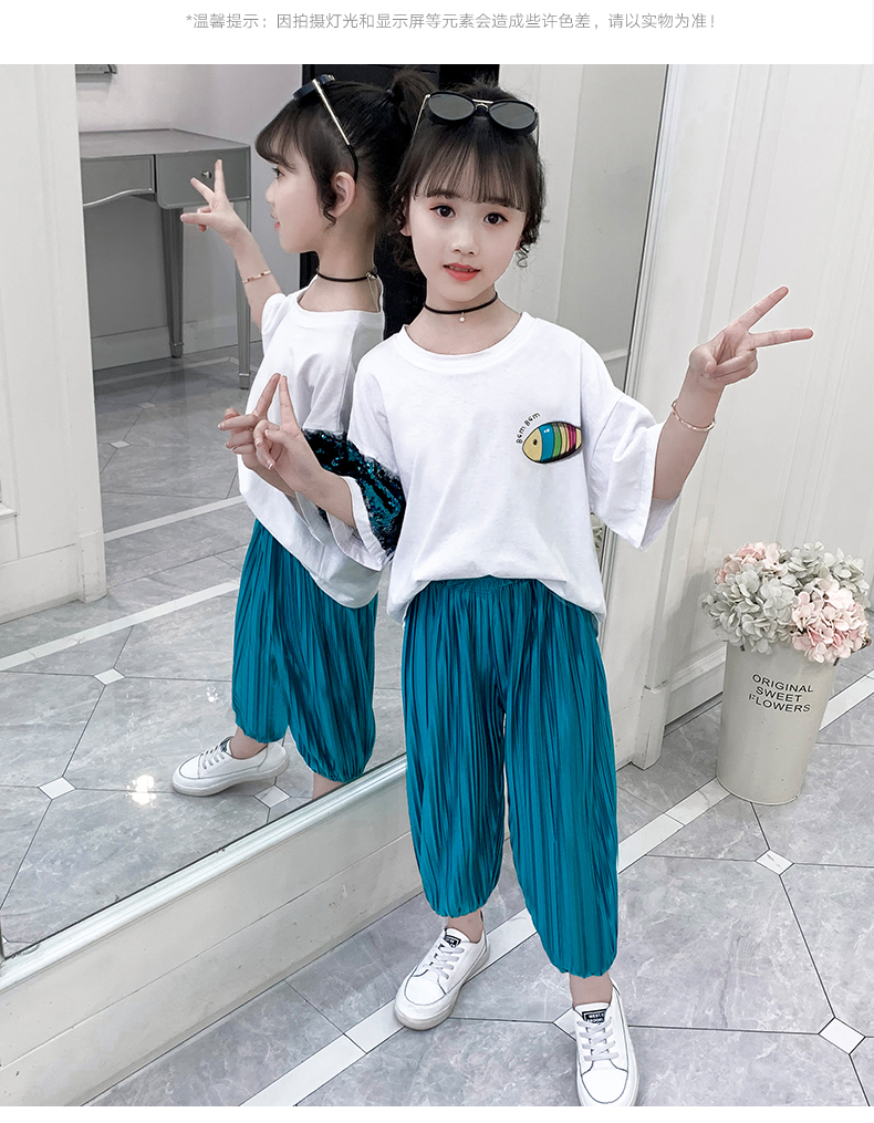 浪莎童装女童夏装中大童洋气t恤纯棉短袖套装儿童宽松冰丝防蚊裤