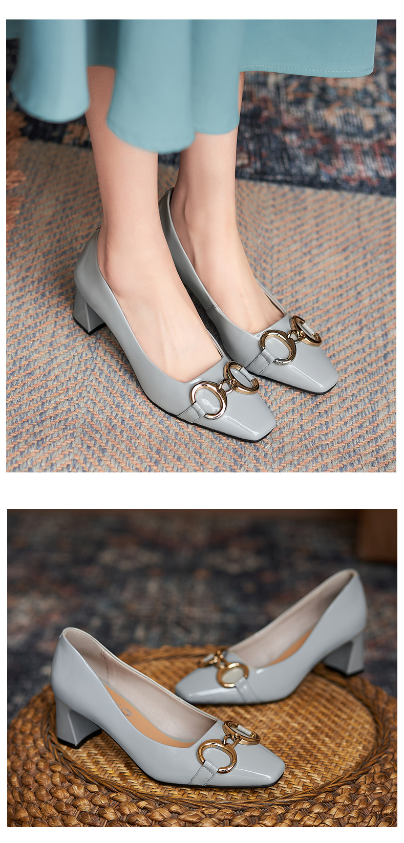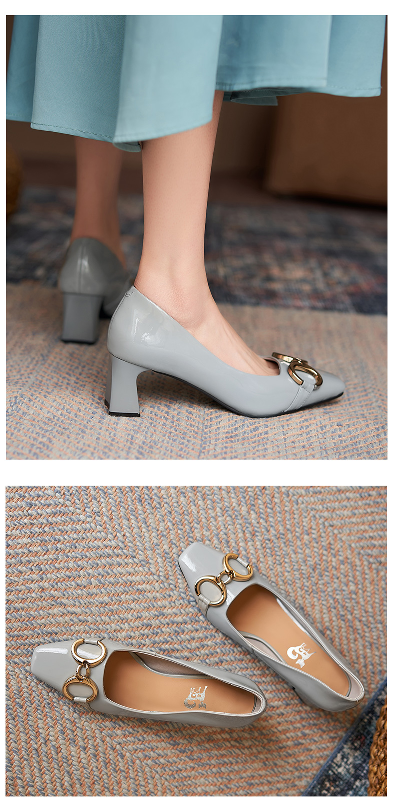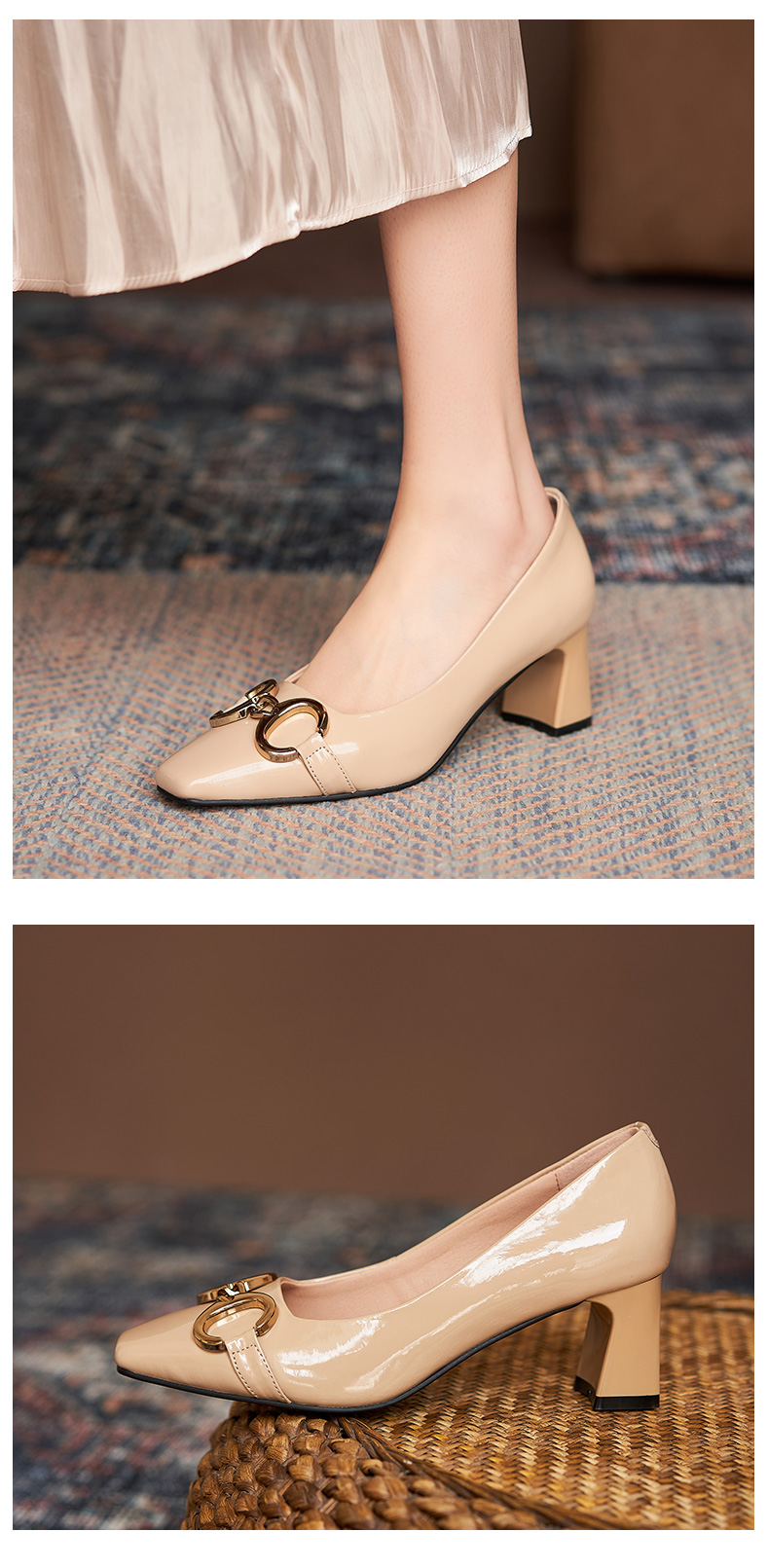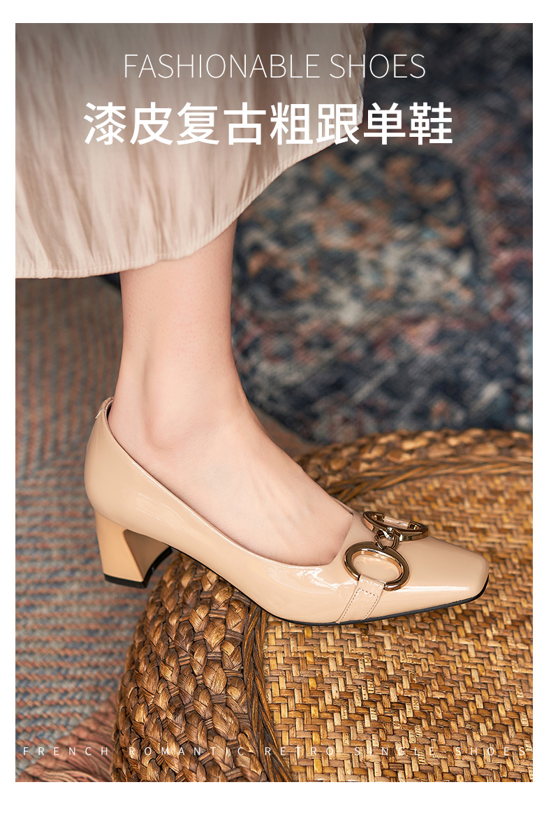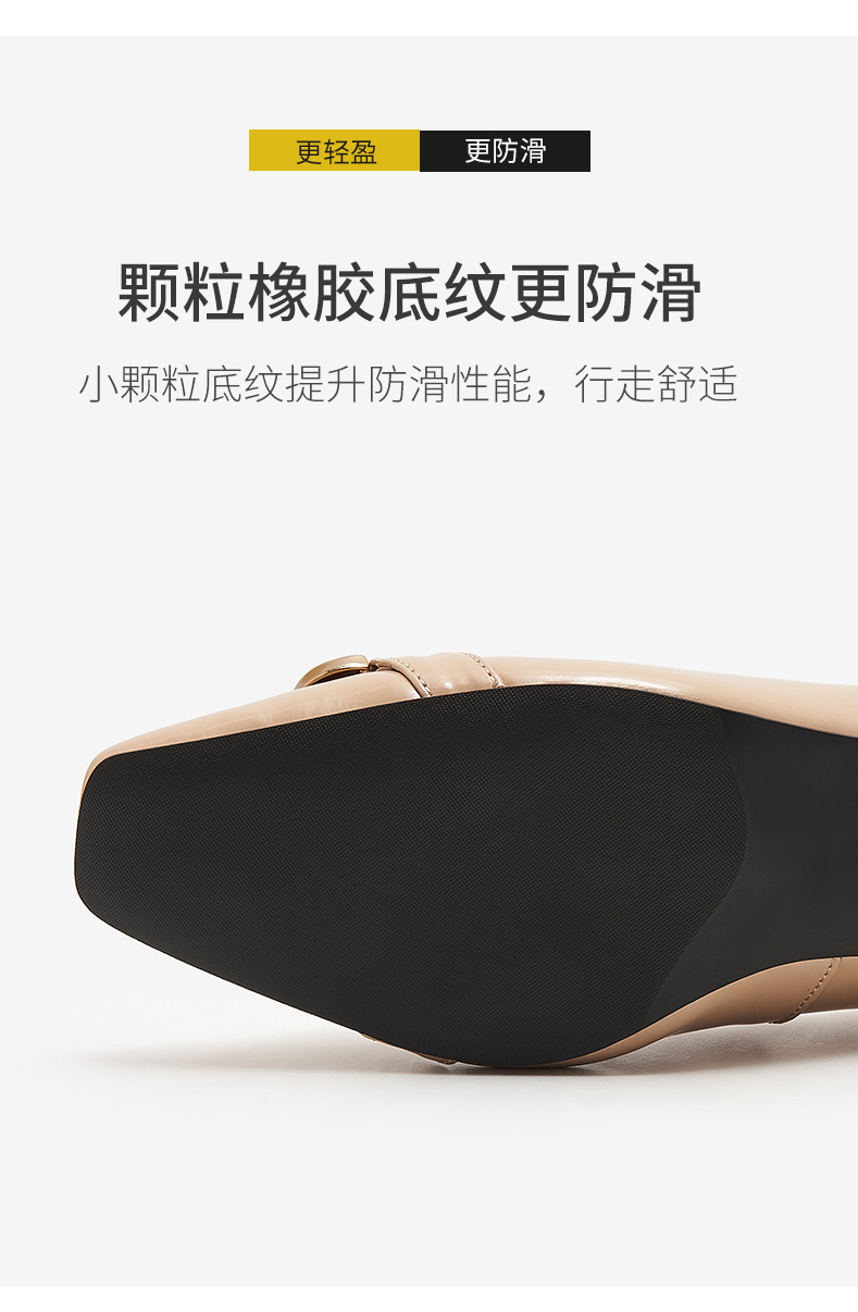 浅口高跟鞋女春夏鞋子2021新款英伦小皮鞋一脚蹬方头真皮粗跟单鞋