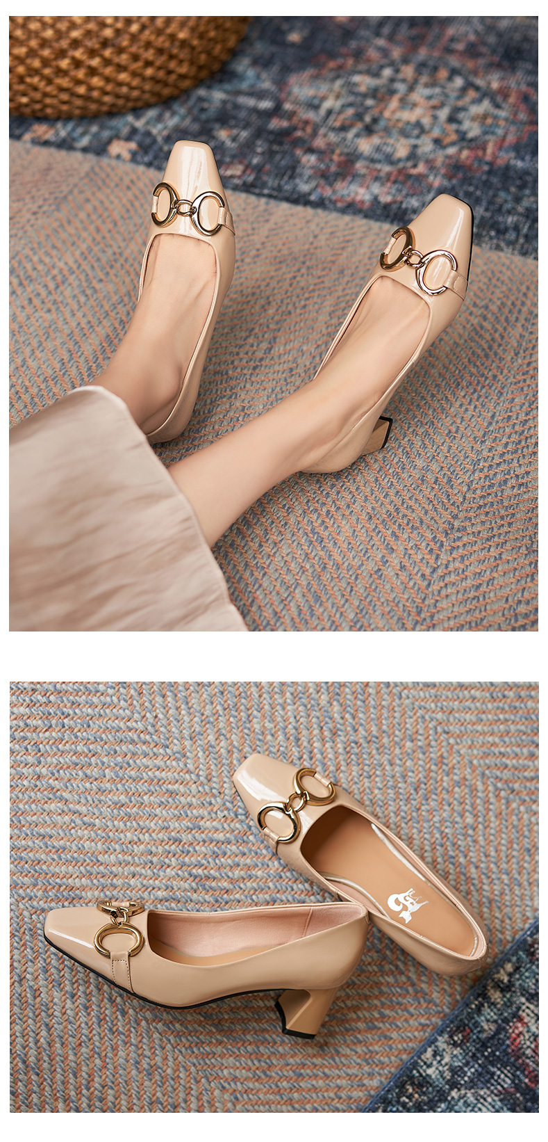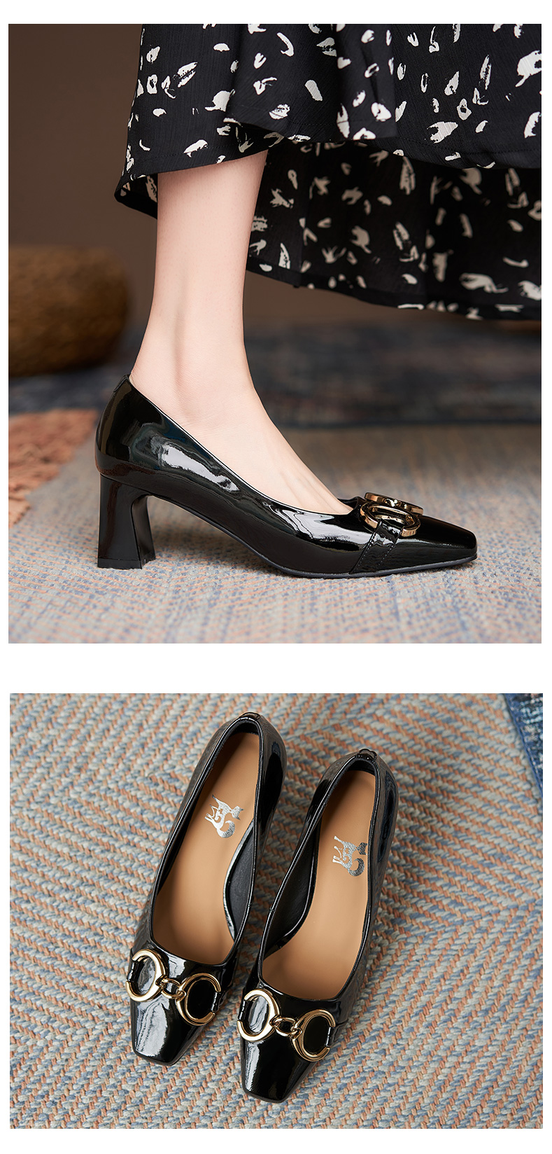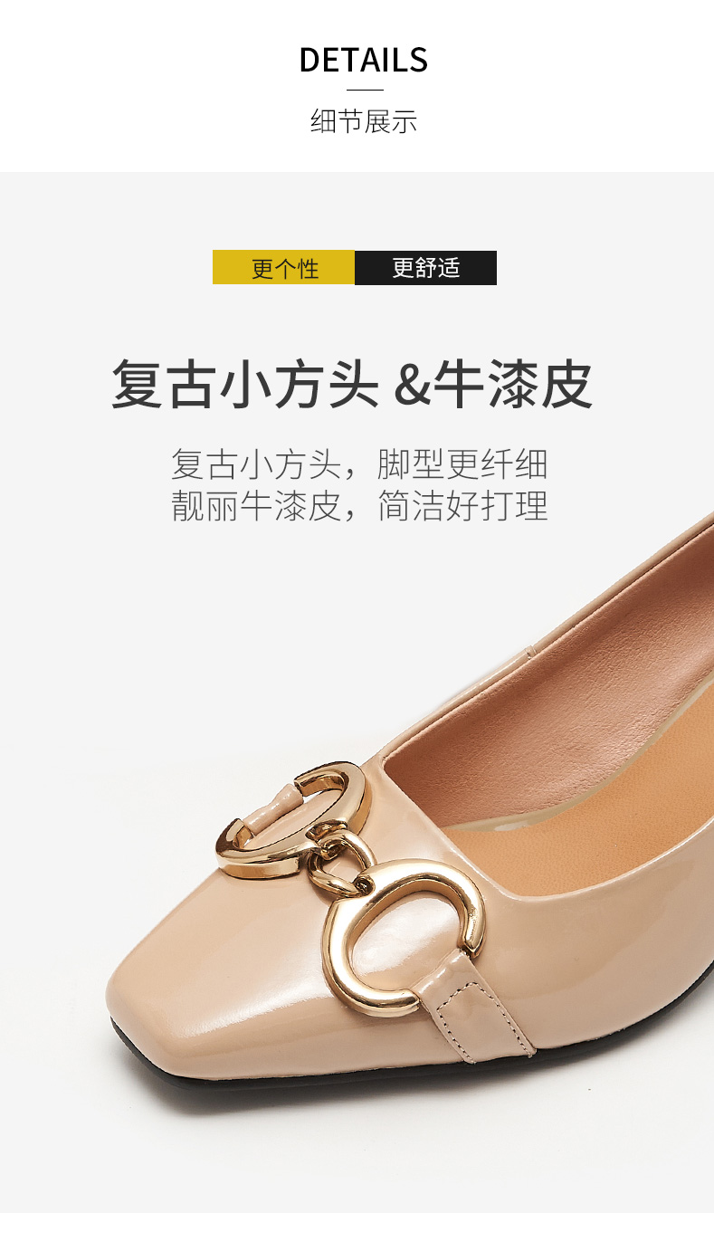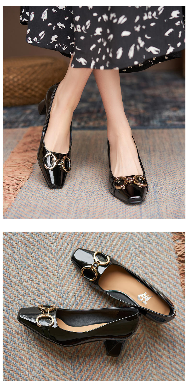 浅口高跟鞋女春夏鞋子2021新款英伦小皮鞋一脚蹬方头真皮粗跟单鞋