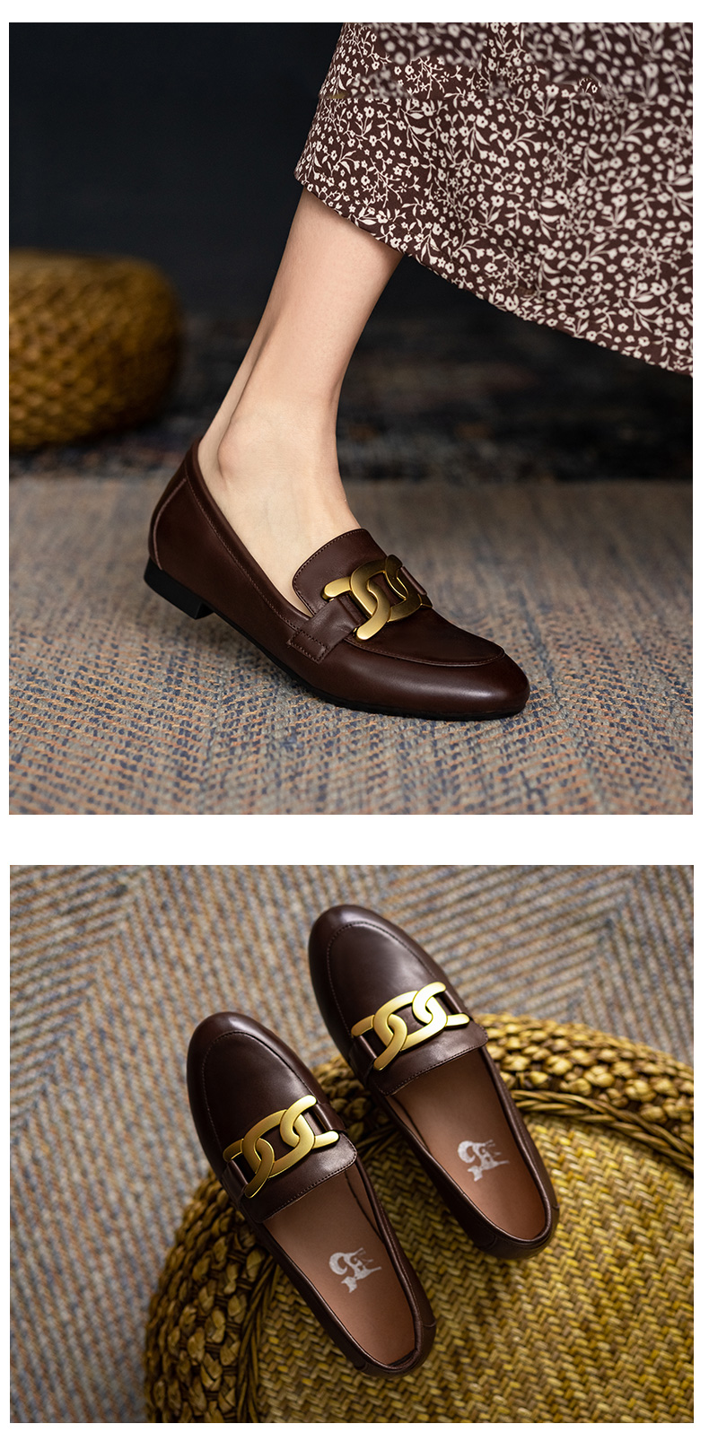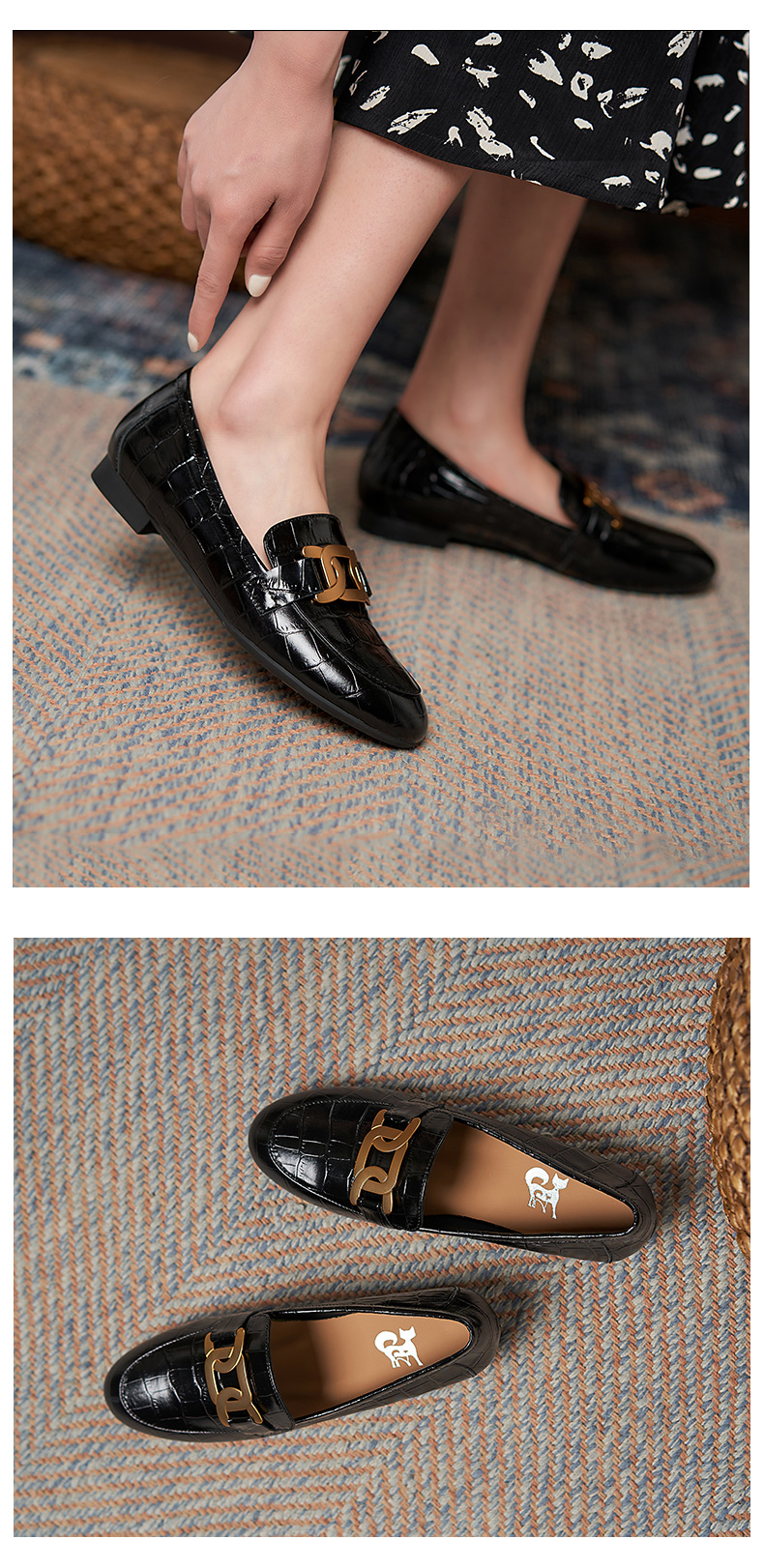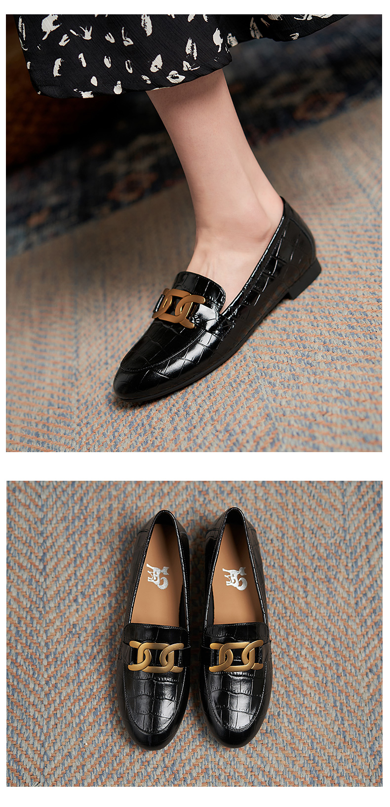 乐福鞋女真皮2021爆款鞋子春英伦风圆头单鞋一脚蹬黑色平底小皮鞋
