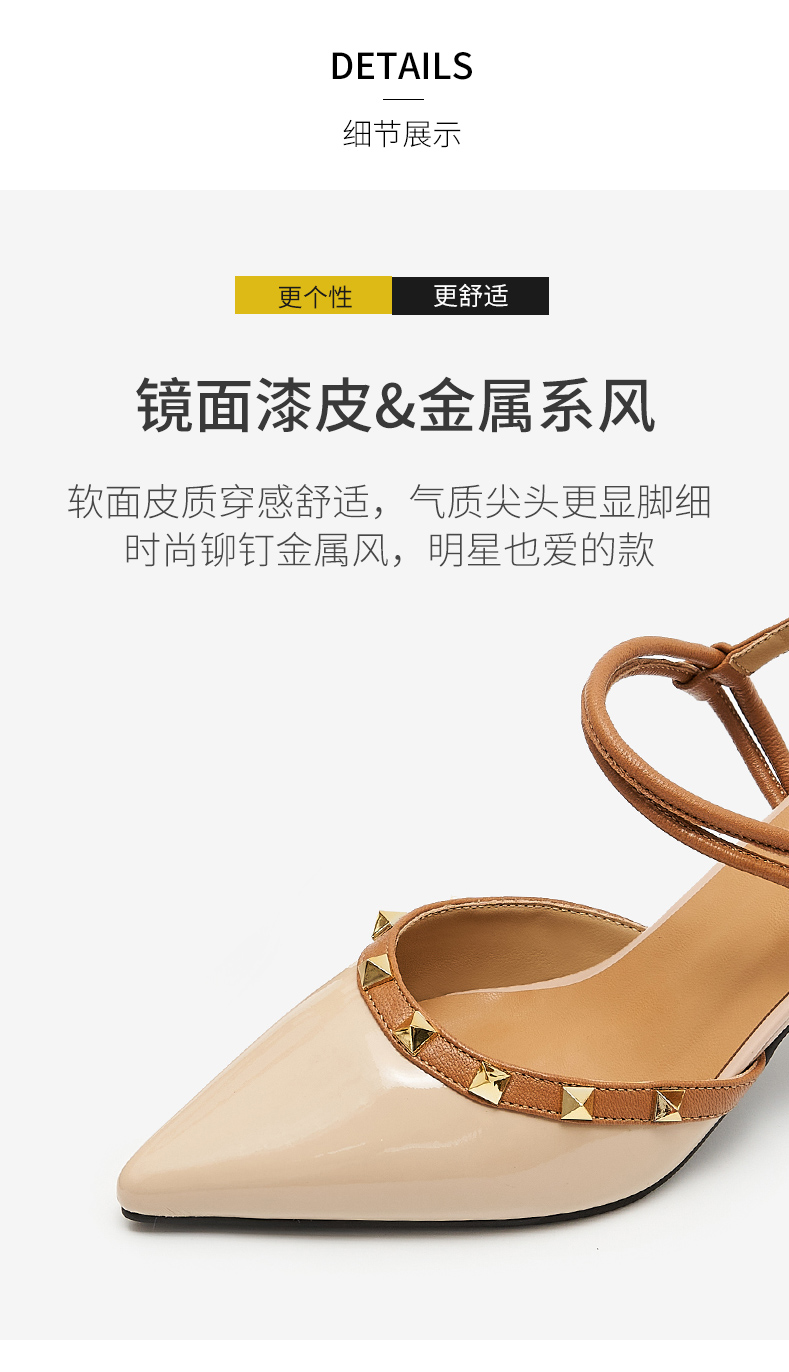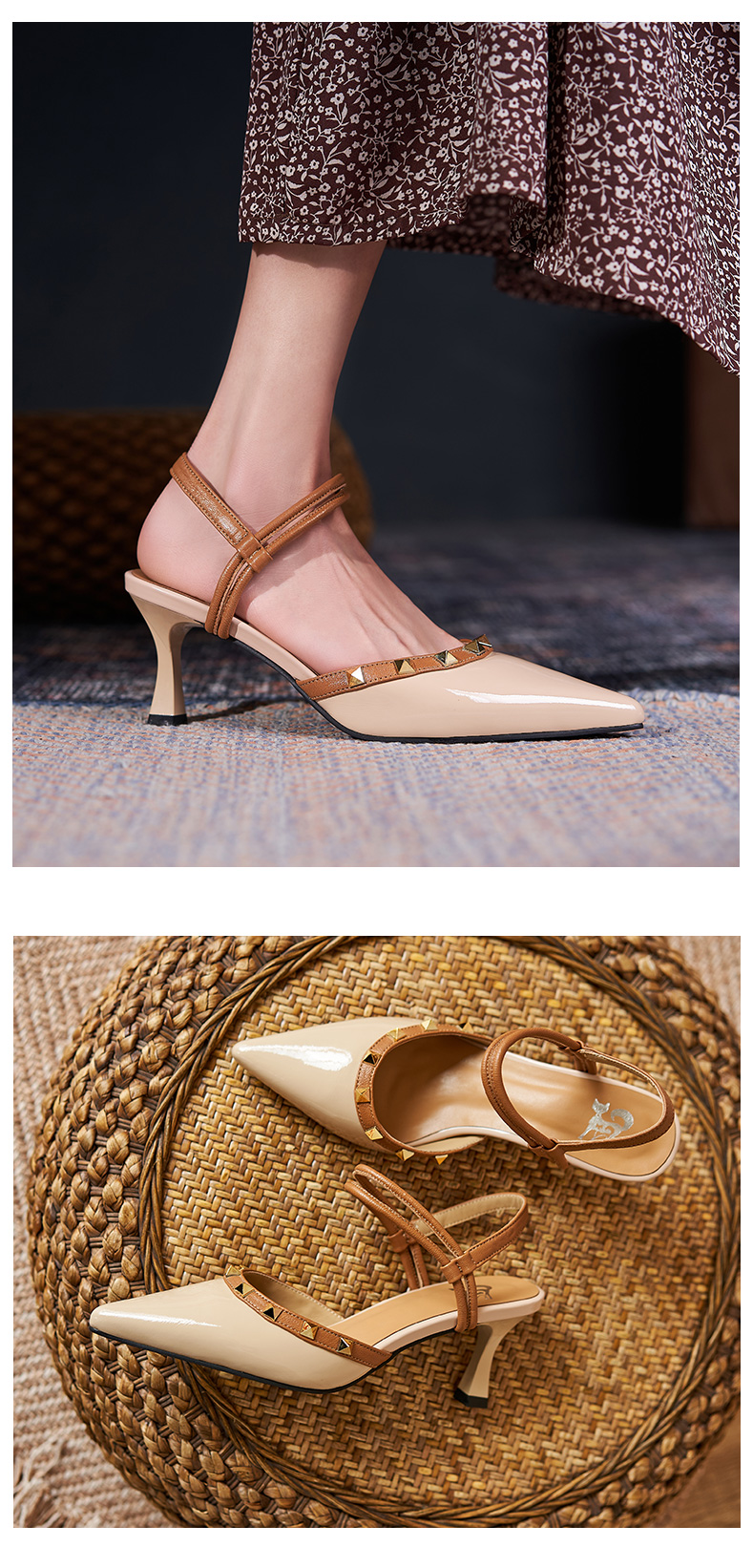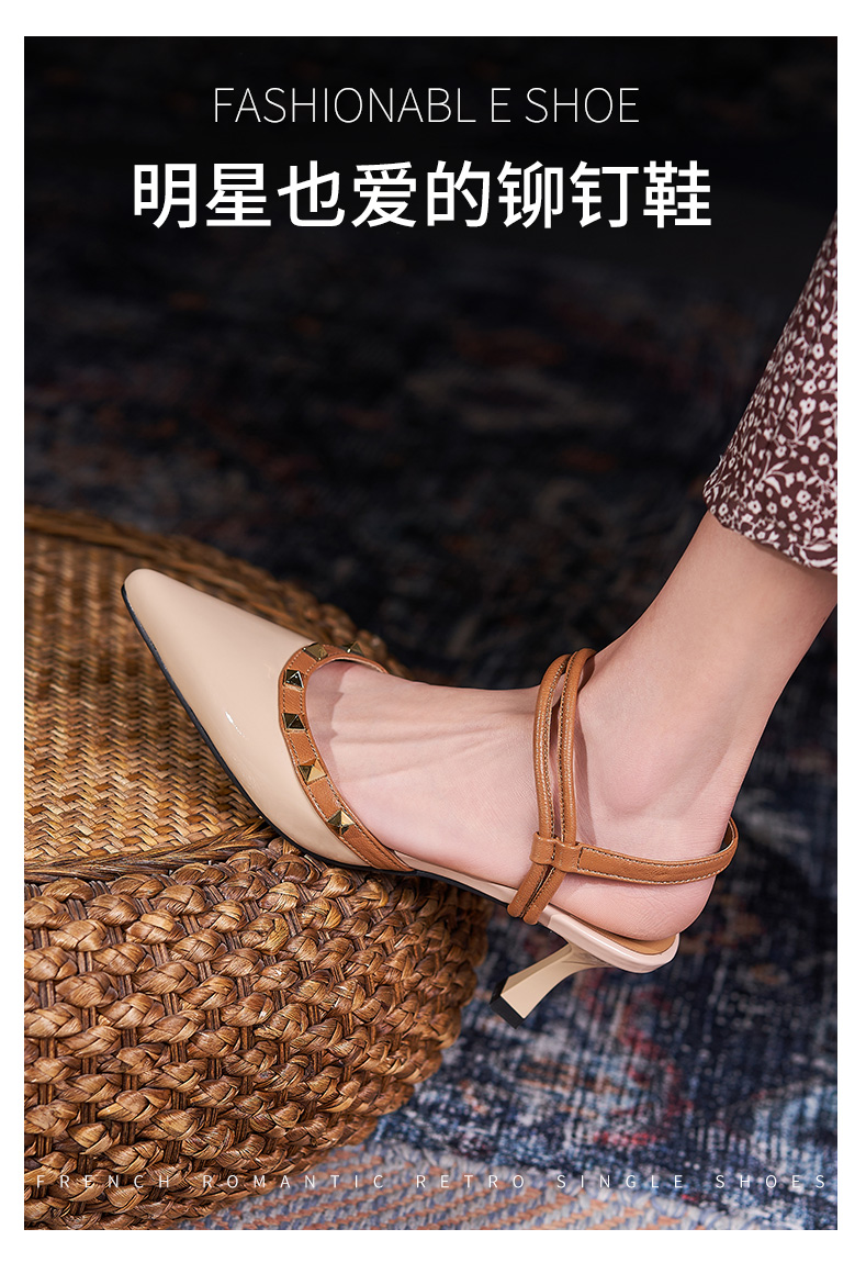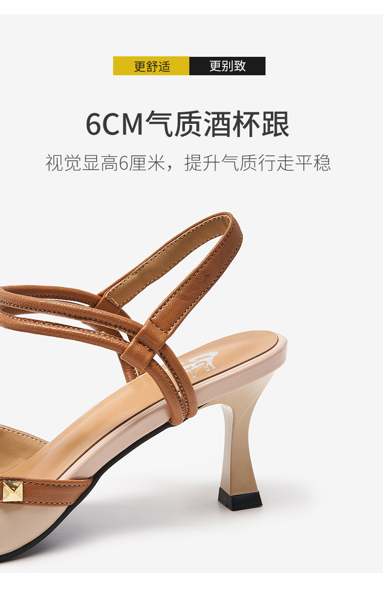 包头凉鞋女2021新款鞋子女夏季高跟鞋后空一字带细跟真皮时装凉鞋