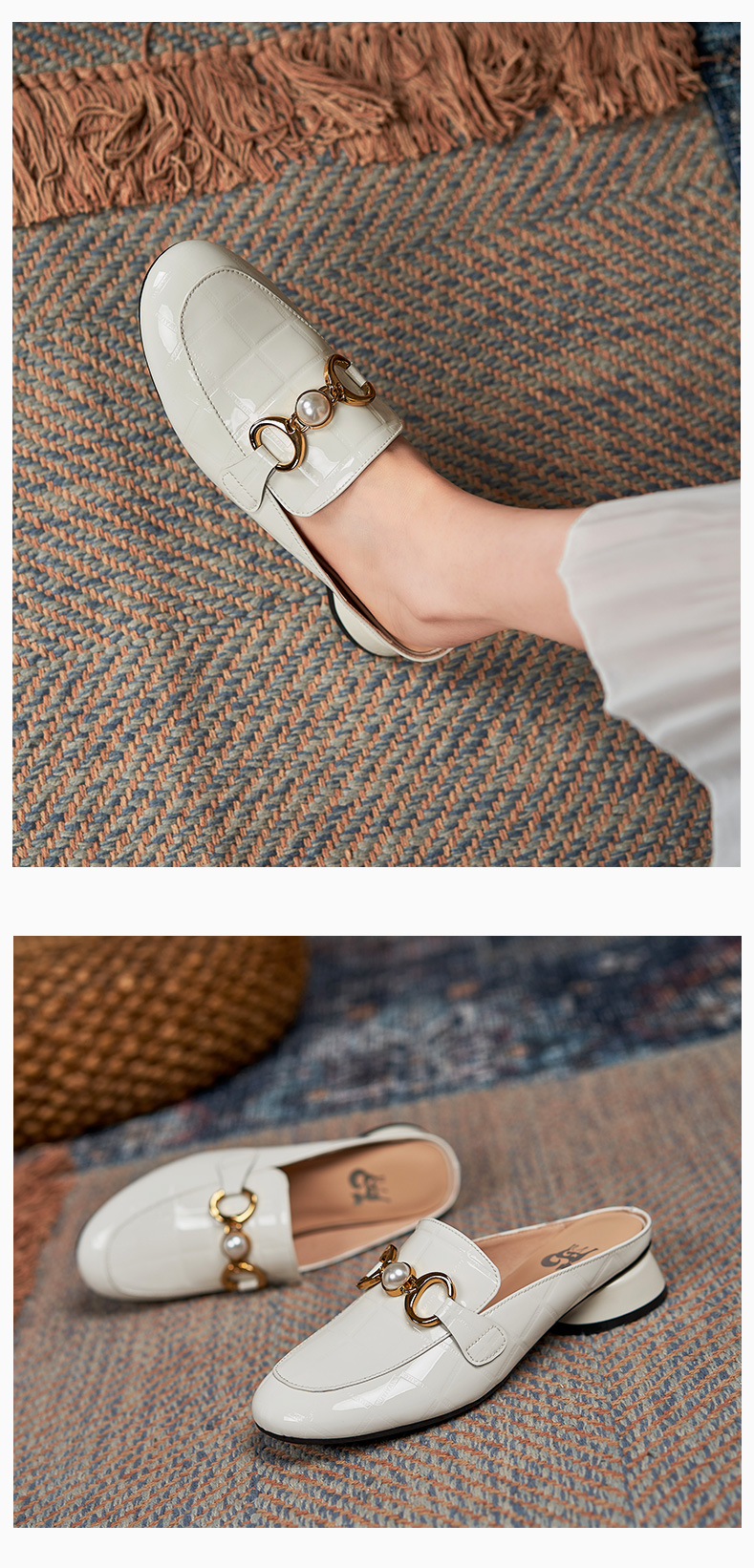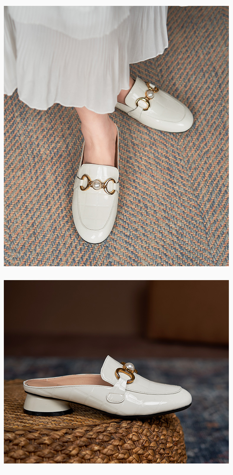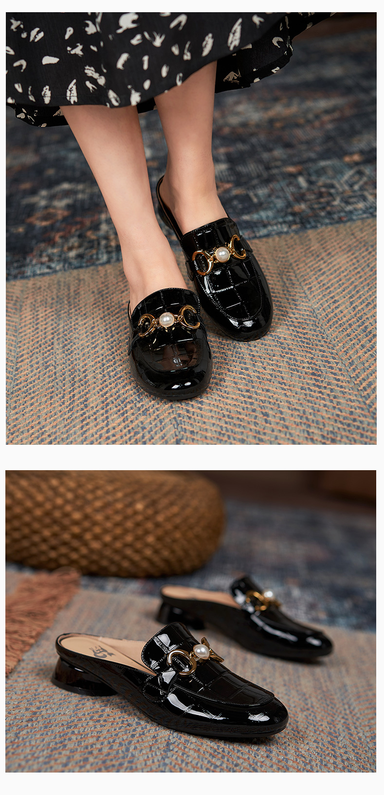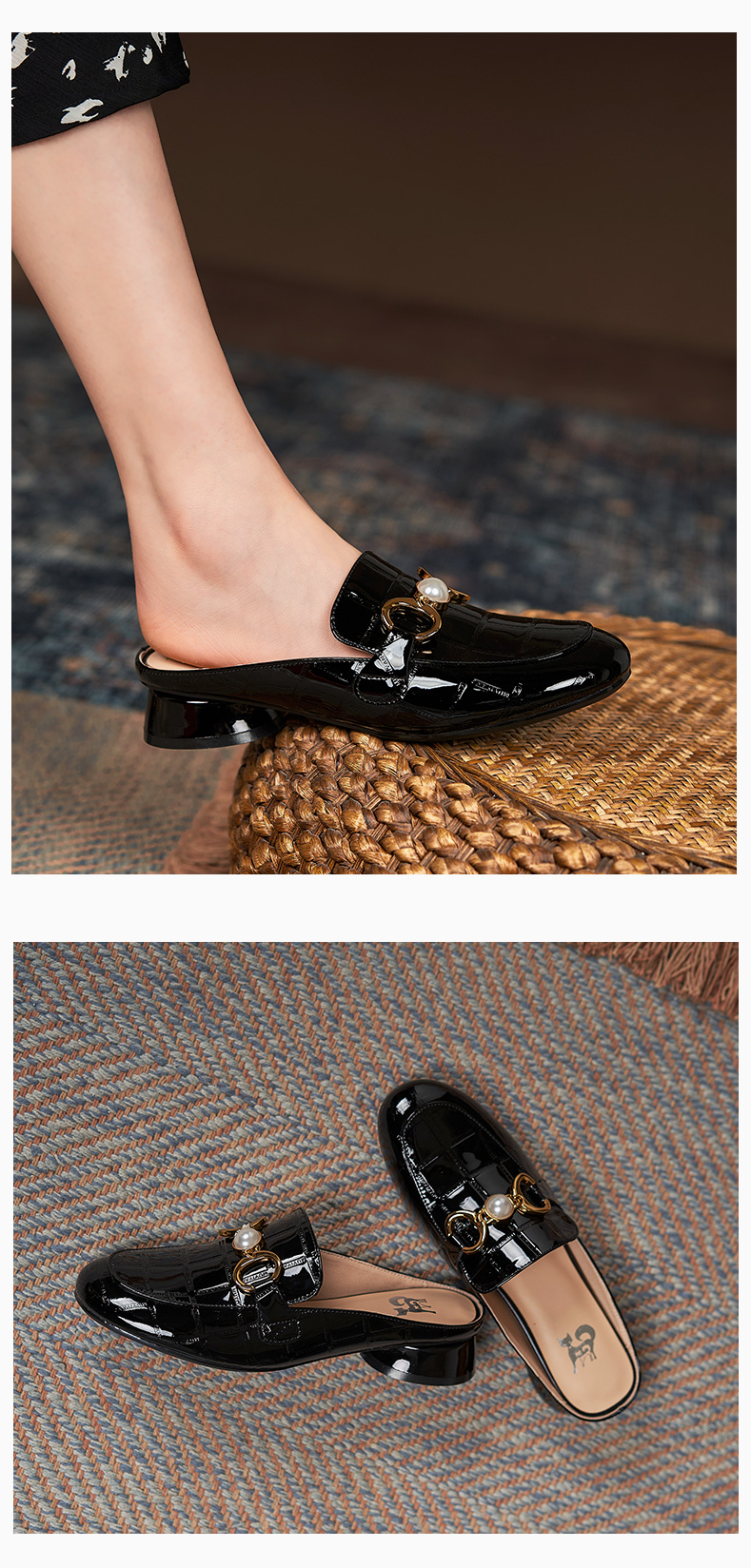 包头半拖鞋女2021年新款夏季厚底外穿中跟懒人穆勒鞋时尚漆皮凉拖