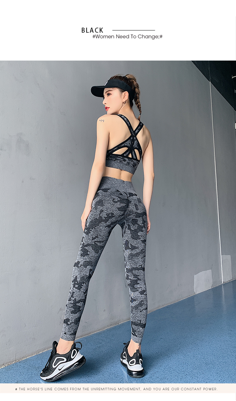 浪莎高腰健身裤女弹力紧身套装提臀迷彩速干跑步运动收腹瑜伽裤