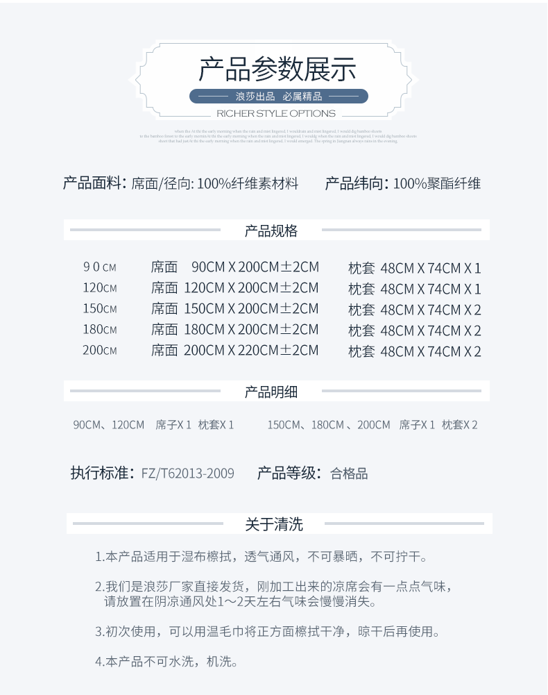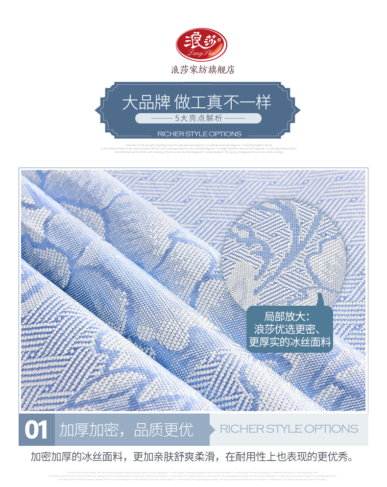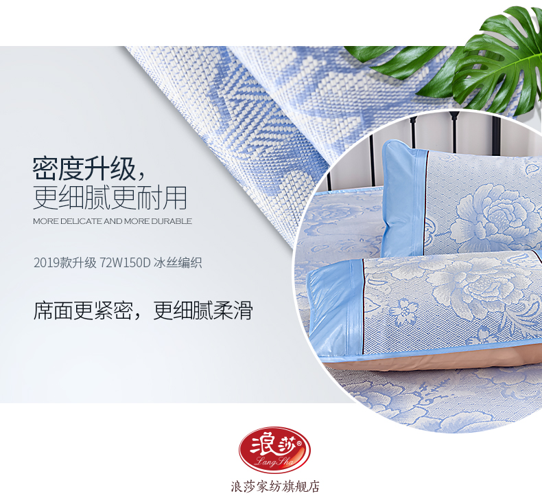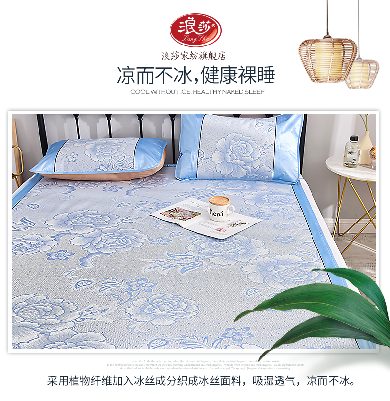 浪莎凉席冰丝席三件套1.8m床夏季1.5米折叠双单人1.2学生宿舍席子