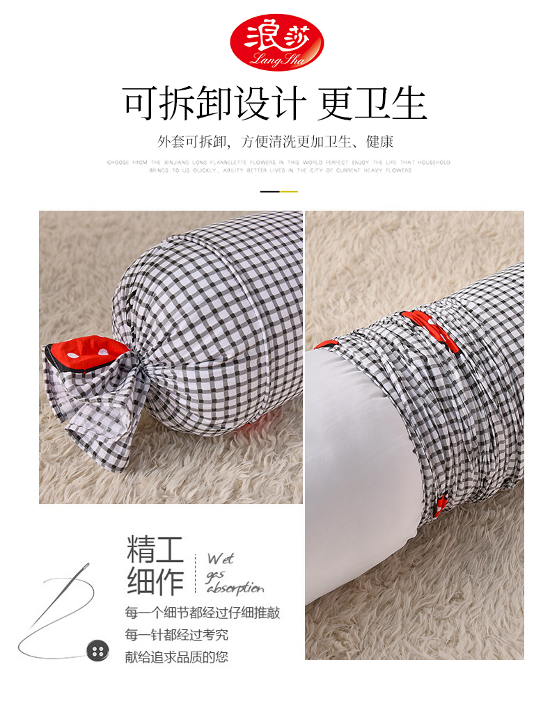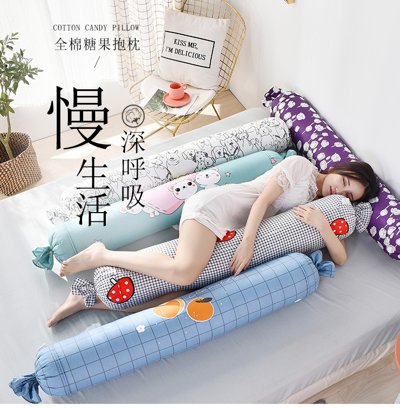 浪莎夏天纯棉糖果圆柱枕头夏季睡觉侧睡夹腿抱枕长条枕女生可拆洗