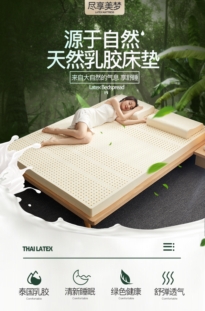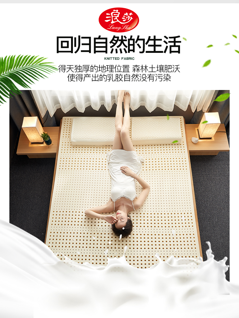 浪莎乳胶床垫泰国天然橡胶1.8m床纯10cm席梦思儿童1.5米5cm进口