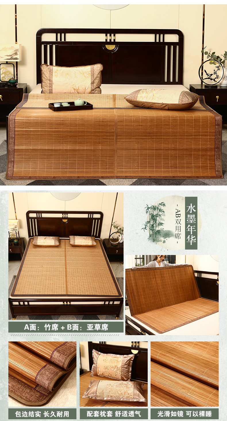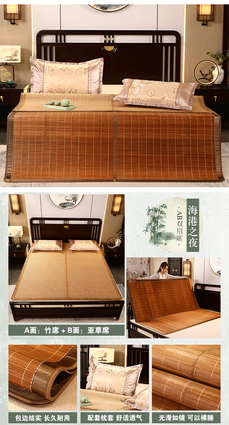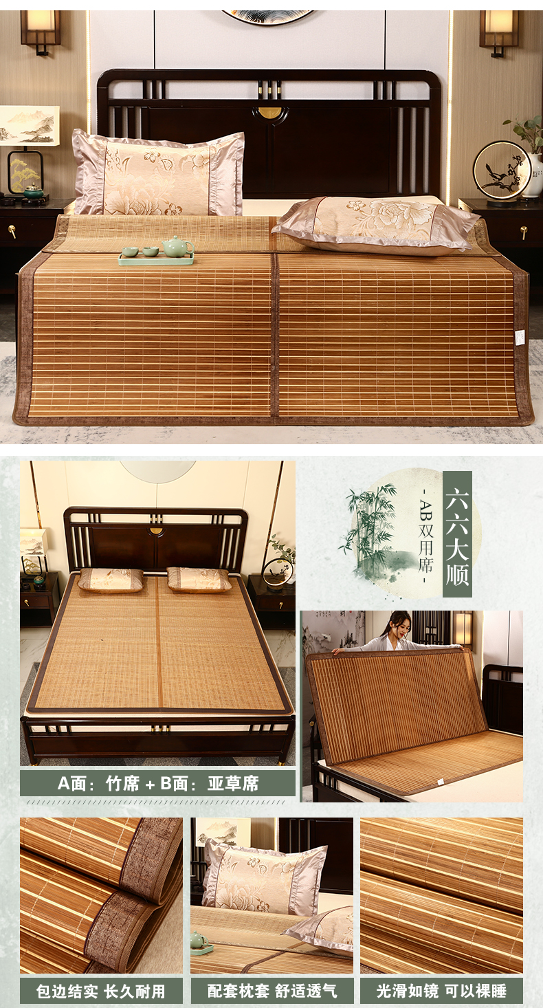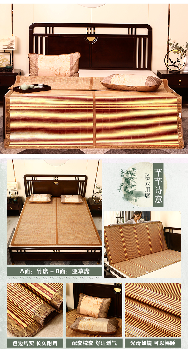 夏季碳化竹席可折叠席子单双人宿舍1.5米1.8m床空调凉席双面可用