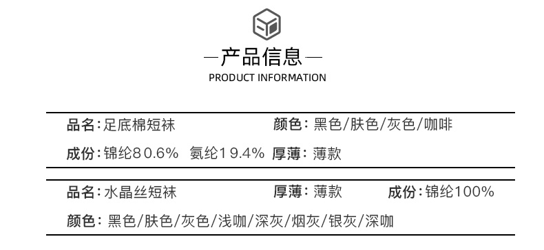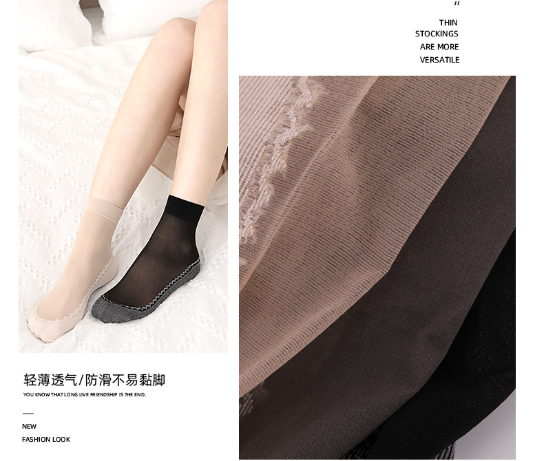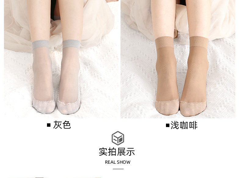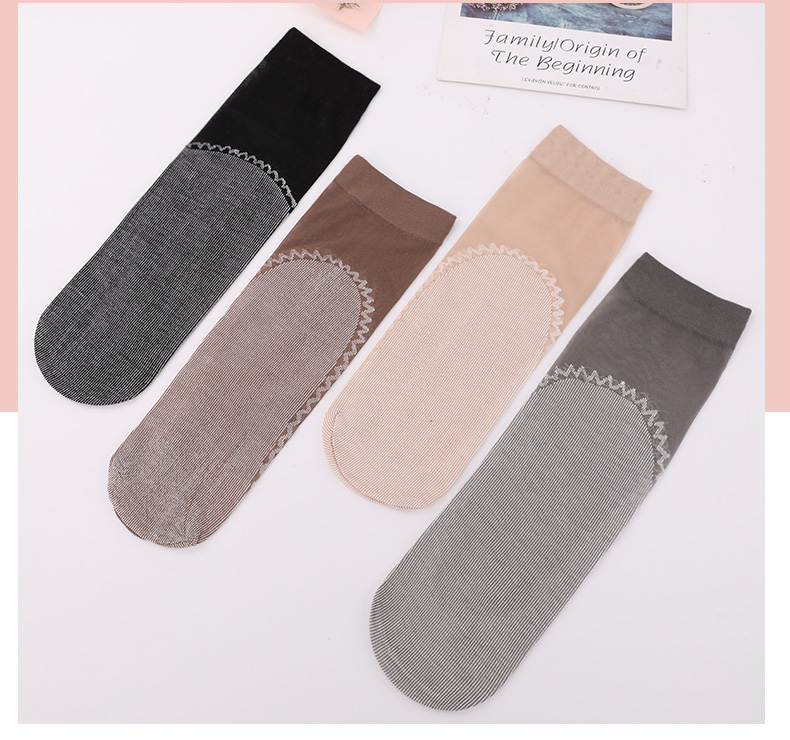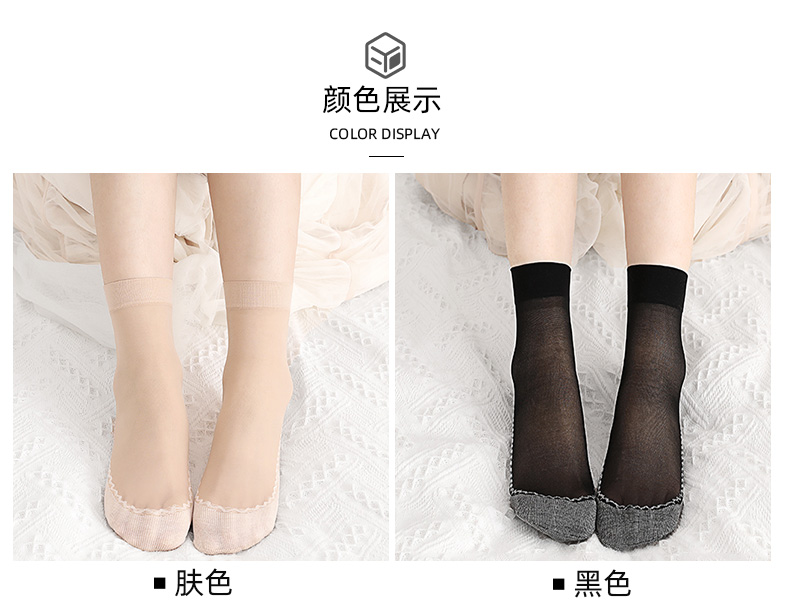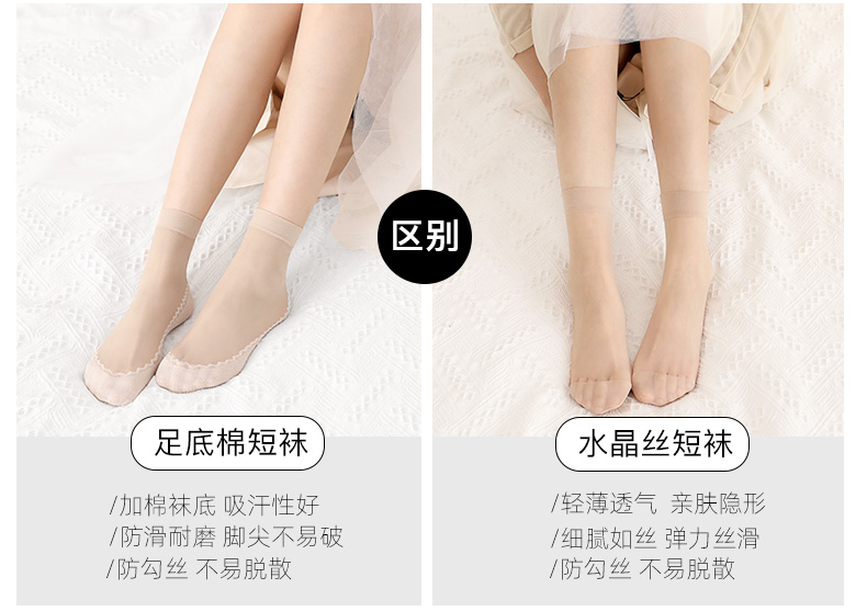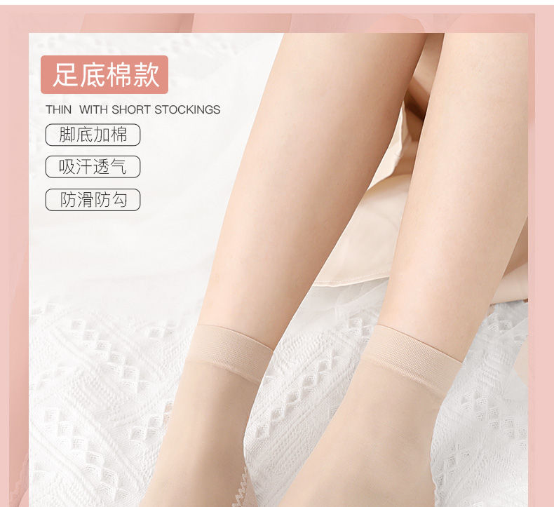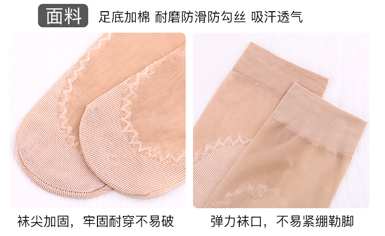 浪莎丝袜女薄款春秋水晶丝短袜耐磨防勾丝夏季黑肉色棉底袜子中筒