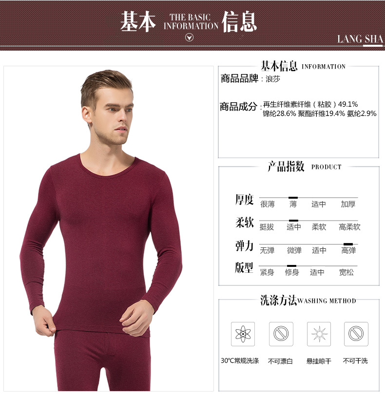 浪莎无缝美体秋衣秋裤套装男士薄款高弹打底秋冬青年修身保暖内衣