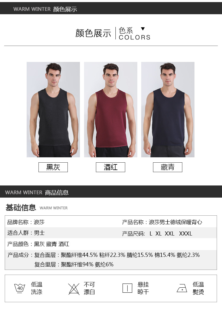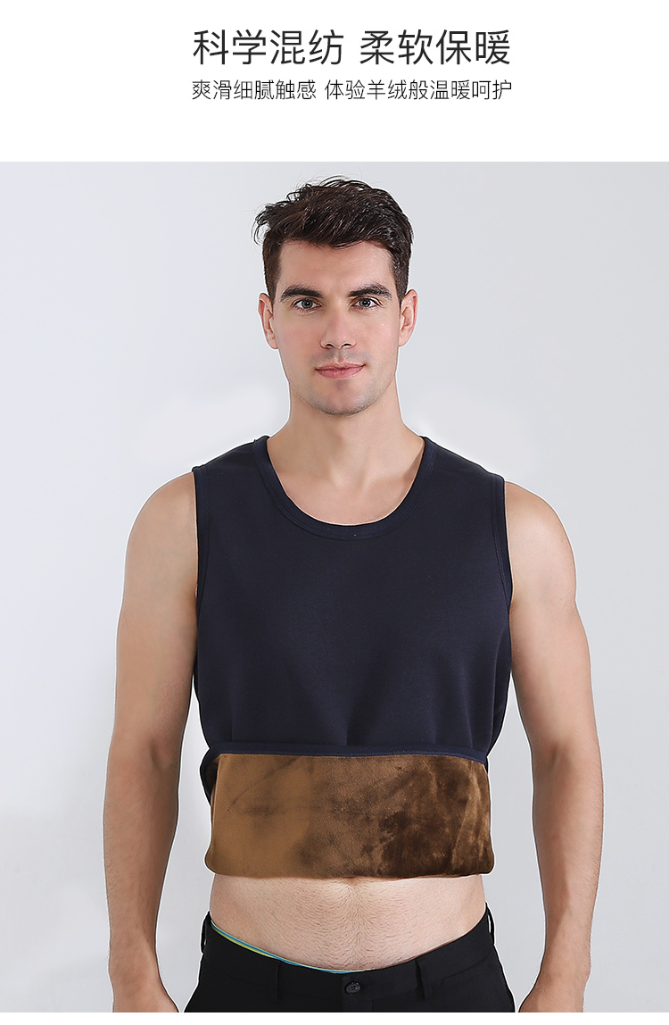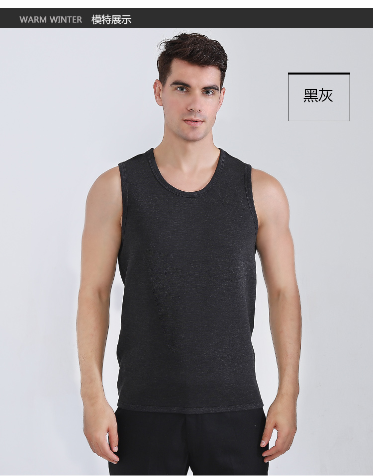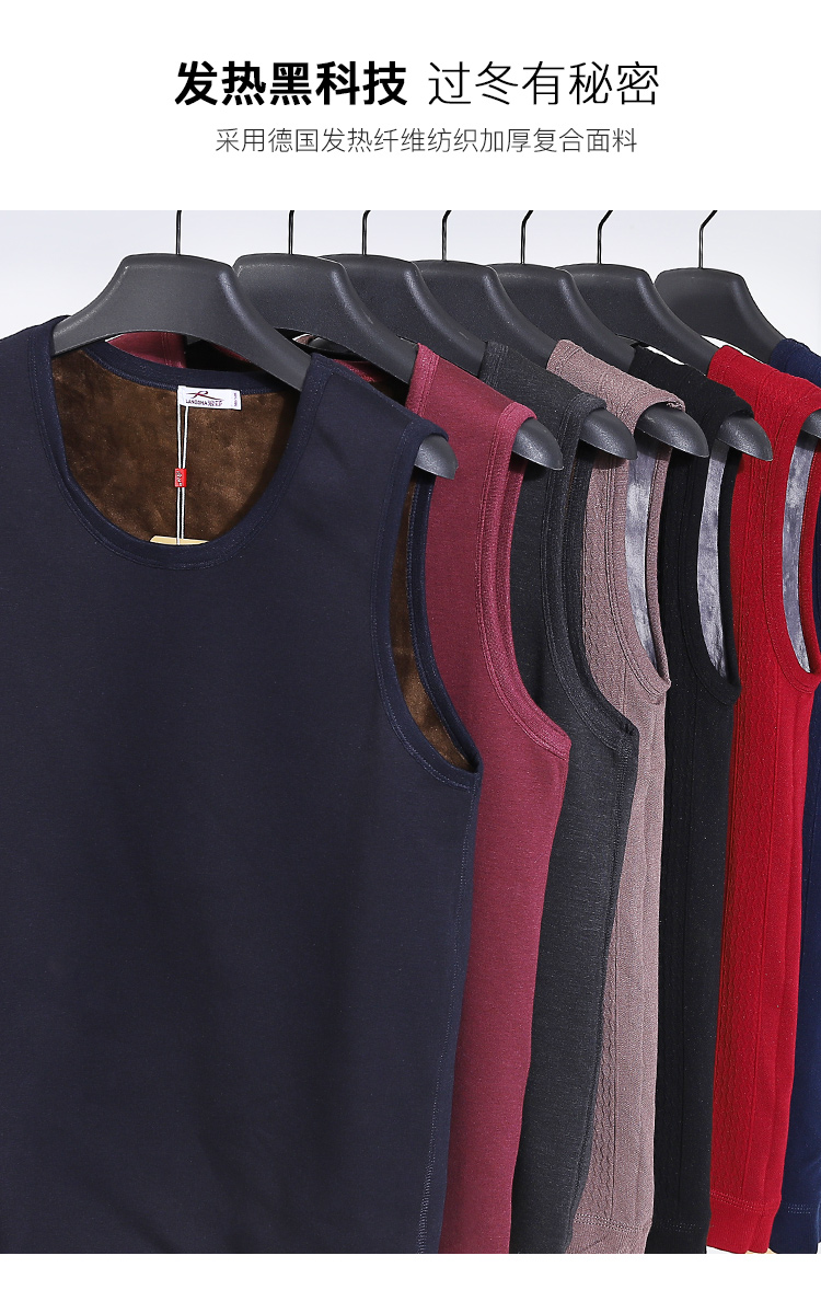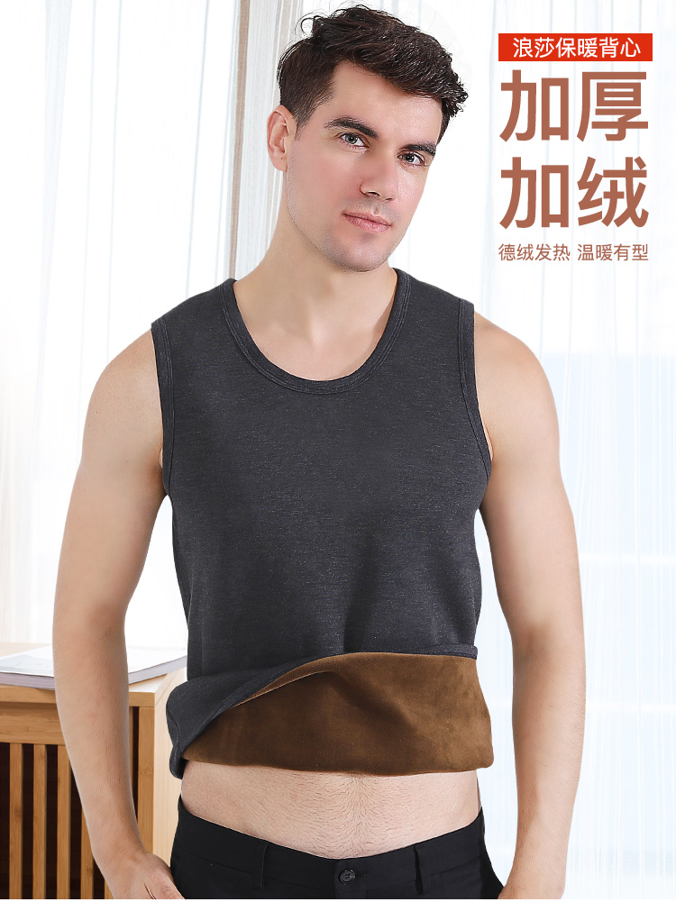 浪莎自发热德绒保暖背心男士加厚加绒冬季上秋衣单件打底保暖内衣